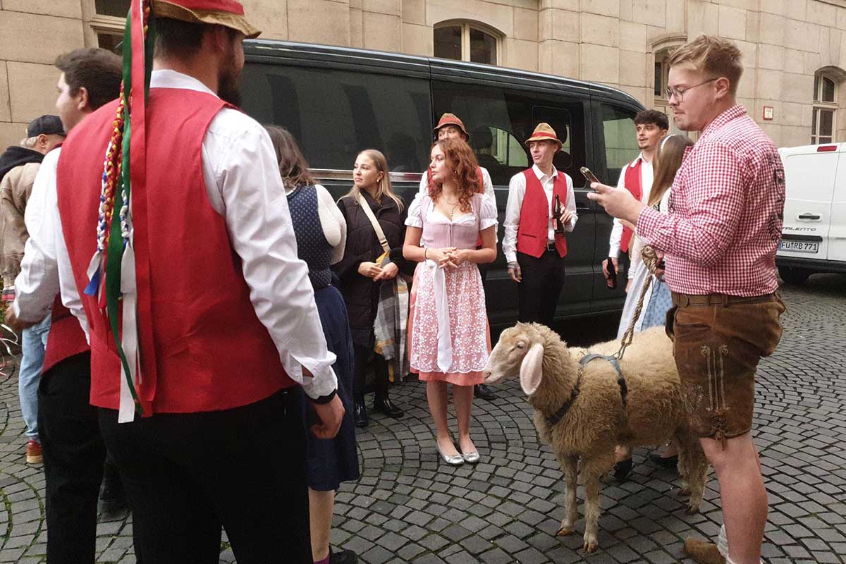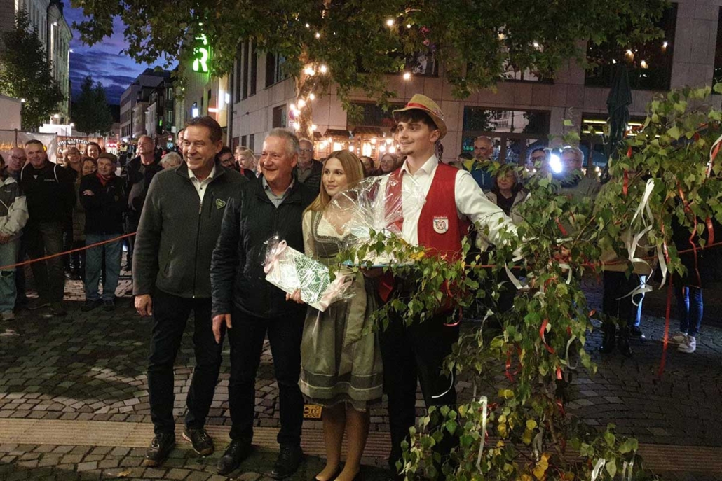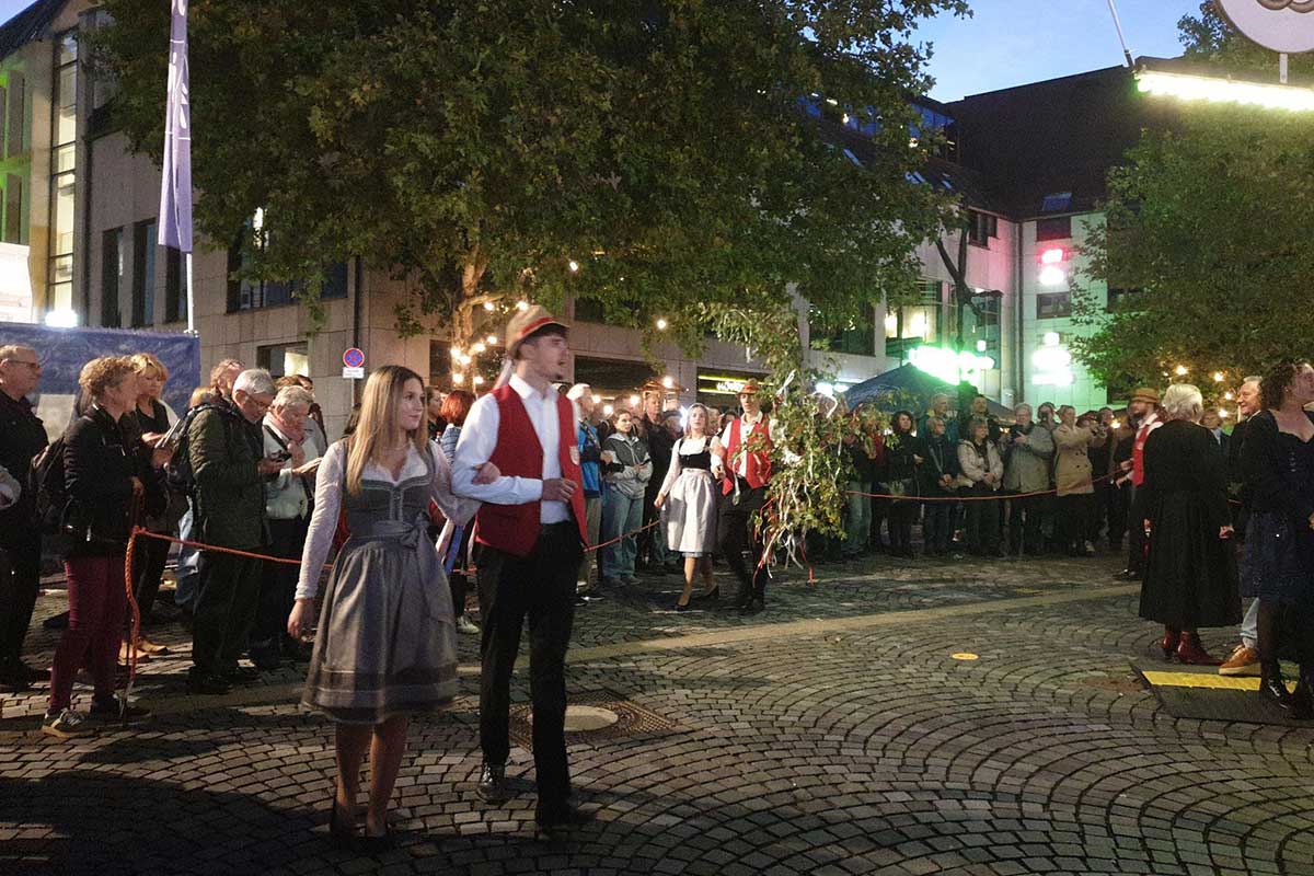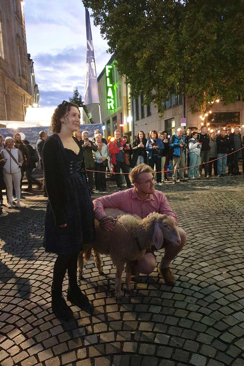 Lara und Niclas vom Stadelner Kärwaverein ertanzten sich am 10.10.2025 zunächst den „Betz“, also das Schaf. Vor 100 Jahren hätte damit dessen letztes Stündlein geschlagen… heutzutage darf der Woll-Lieferant zurück auf die Weide, das Siegerpaar bekam statt dessen einen Sachpreis überreicht. Diesmal gleich von 2 Bürgermeistern. Das Präsent wird jedes Jahr von Schaustellern und Einzelhändlern liebevoll zusammengestellt.